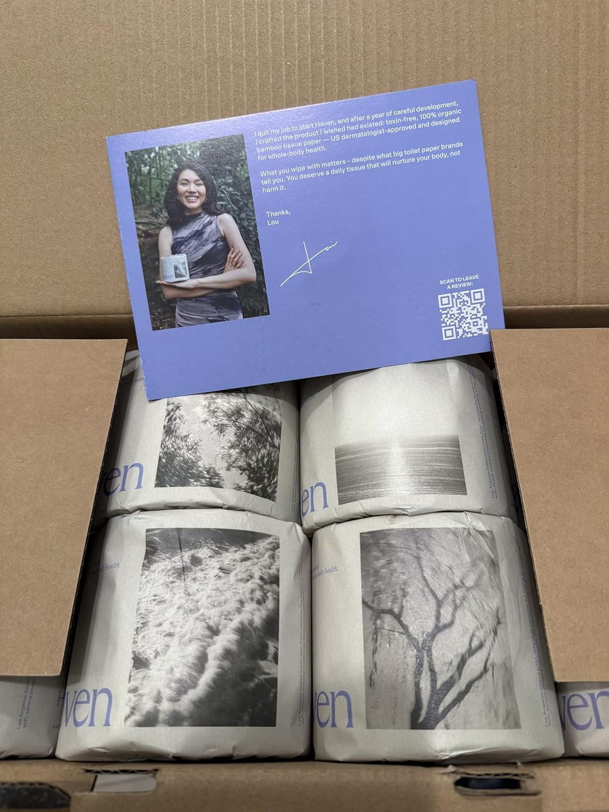 Haven crafts bleach-free, toxin-free, 100% organic bamboo tissue paper - US dermatologist-approved and designed for whole-body health.
